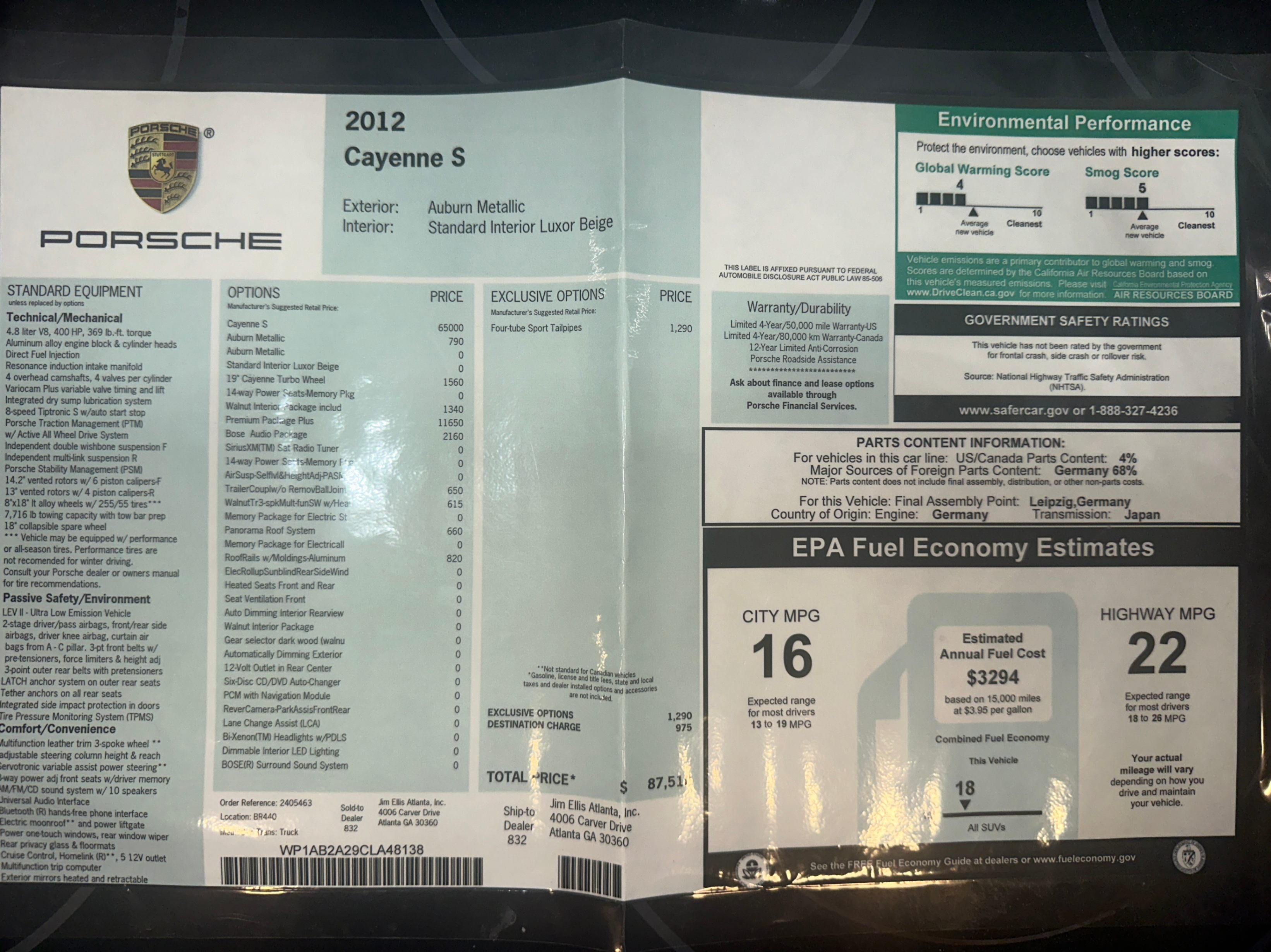RARE low mileage Auburn Metallic Cayenne S with 400 horsepower normally aspirated V-8.